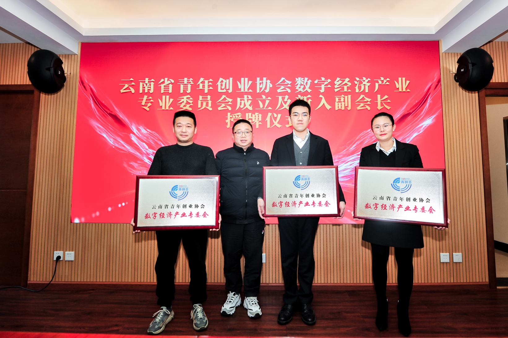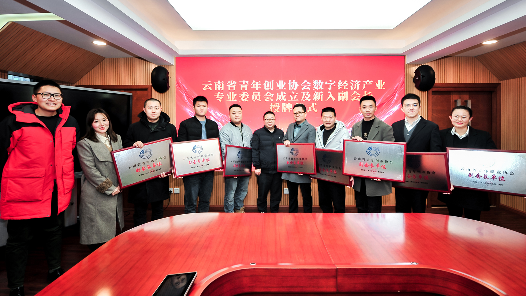 會(huì)議期間為新入副會(huì)長(zhǎng)單位頒發(fā)牌匾,提出青創(chuàng)會(huì)的發(fā)展要不斷借力“智庫(kù)”,凝聚更多的新生力量,并表示新成立的數(shù)字經(jīng)濟(jì)產(chǎn)業(yè)專(zhuān)業(yè)委員會(huì)要以高度的使命感和責(zé)任感開(kāi)展工作,積極探索數(shù)字經(jīng)濟(jì)產(chǎn)業(yè)新的發(fā)展模式,成為青年創(chuàng)業(yè)者的護(hù)航者、助力云品出滇的踐行者、助推鄉(xiāng)村振興的探索者、爭(zhēng)當(dāng)數(shù)智云南勇立潮頭的先行者。
